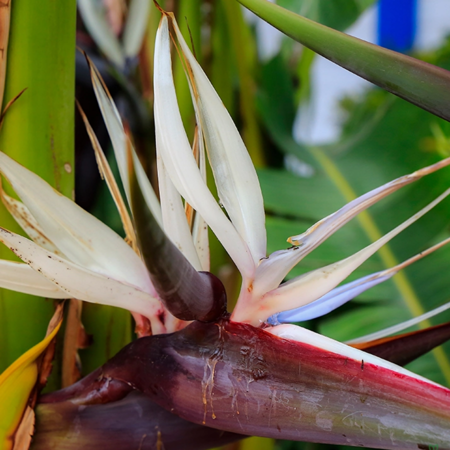 The emblematic orange and blue flowers of Strelitzia Reginae feature a bird in flight, making it a beautiful decorative piece inside or in equatorial flowers. Even when not thriving, its structural leaves create ocular appeal. - For Beginners